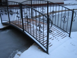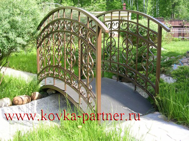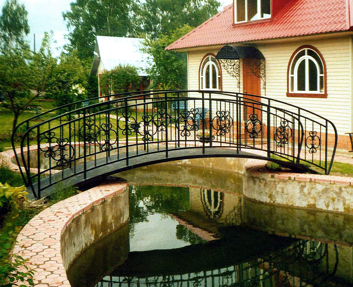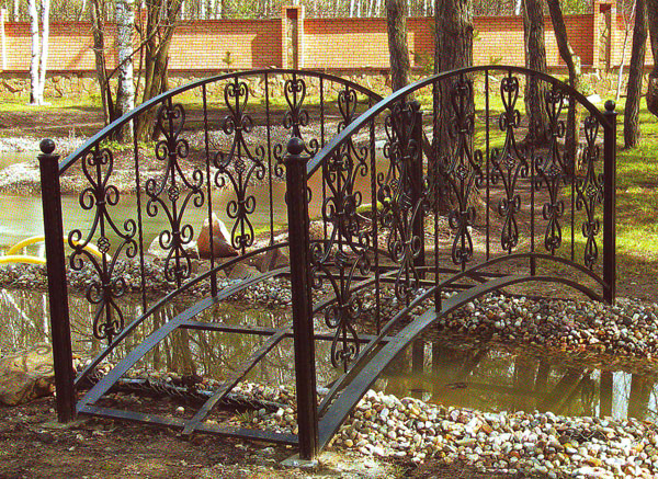 Наши кованые мостики отлично украсят Ваш ландшафт. Они служат превосходной опорой, соединяют берега в узеньком месте, превосходно гармонируют с фонарями, лавочками, стульями. Как правило, мостики покрывают деревом - такими породами, как, дуб, сосна, вишня, а поручни делают из металла. Наши мостики выполнены из высококачественного материала, что делает их прочными и долговечными.
